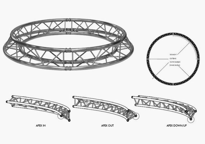 TRUSS CIRCULAR 6M Y 8 M Estructura Truss Circular GQ30 Longitud: 6M y 8M Diametro Consiste en 4 segmentos
